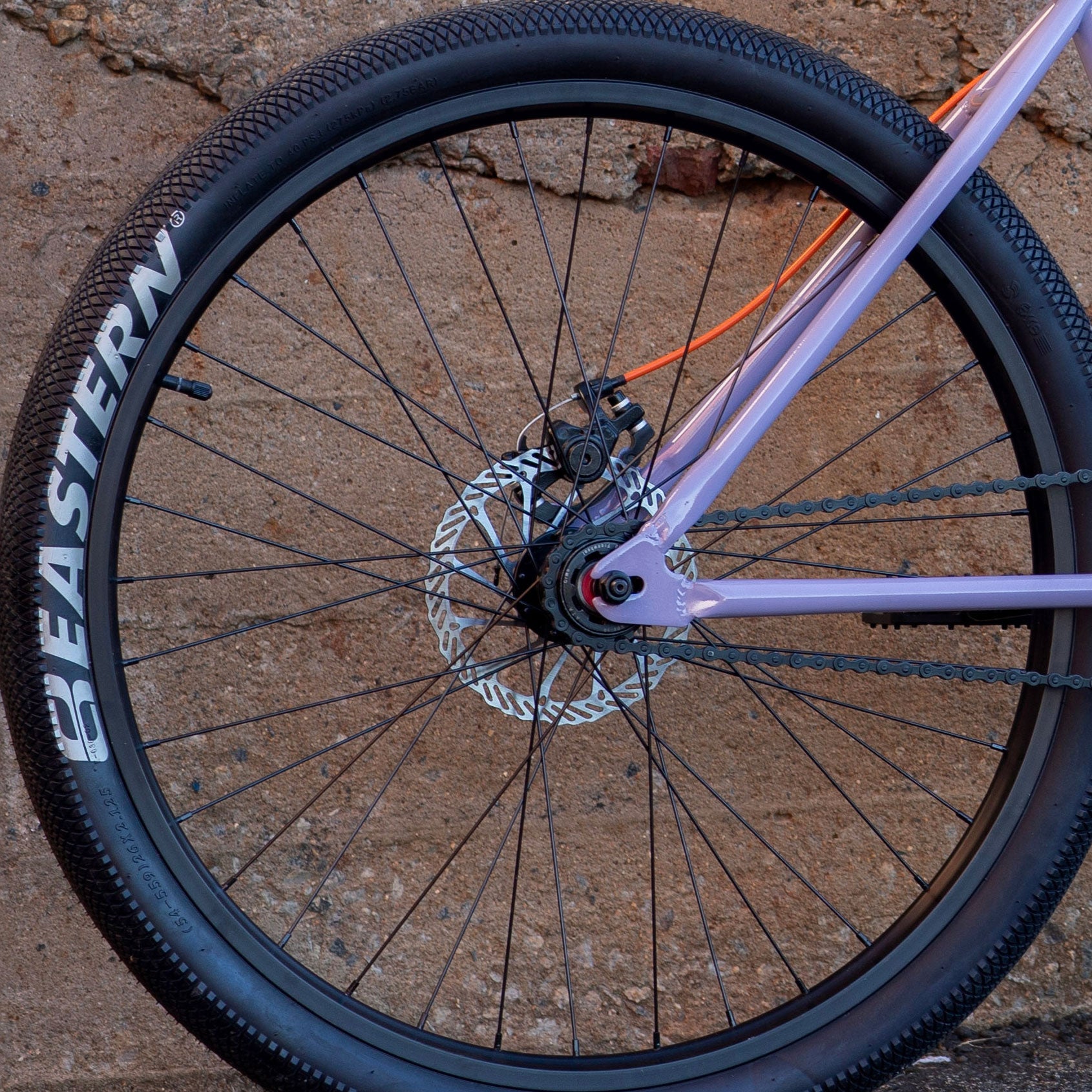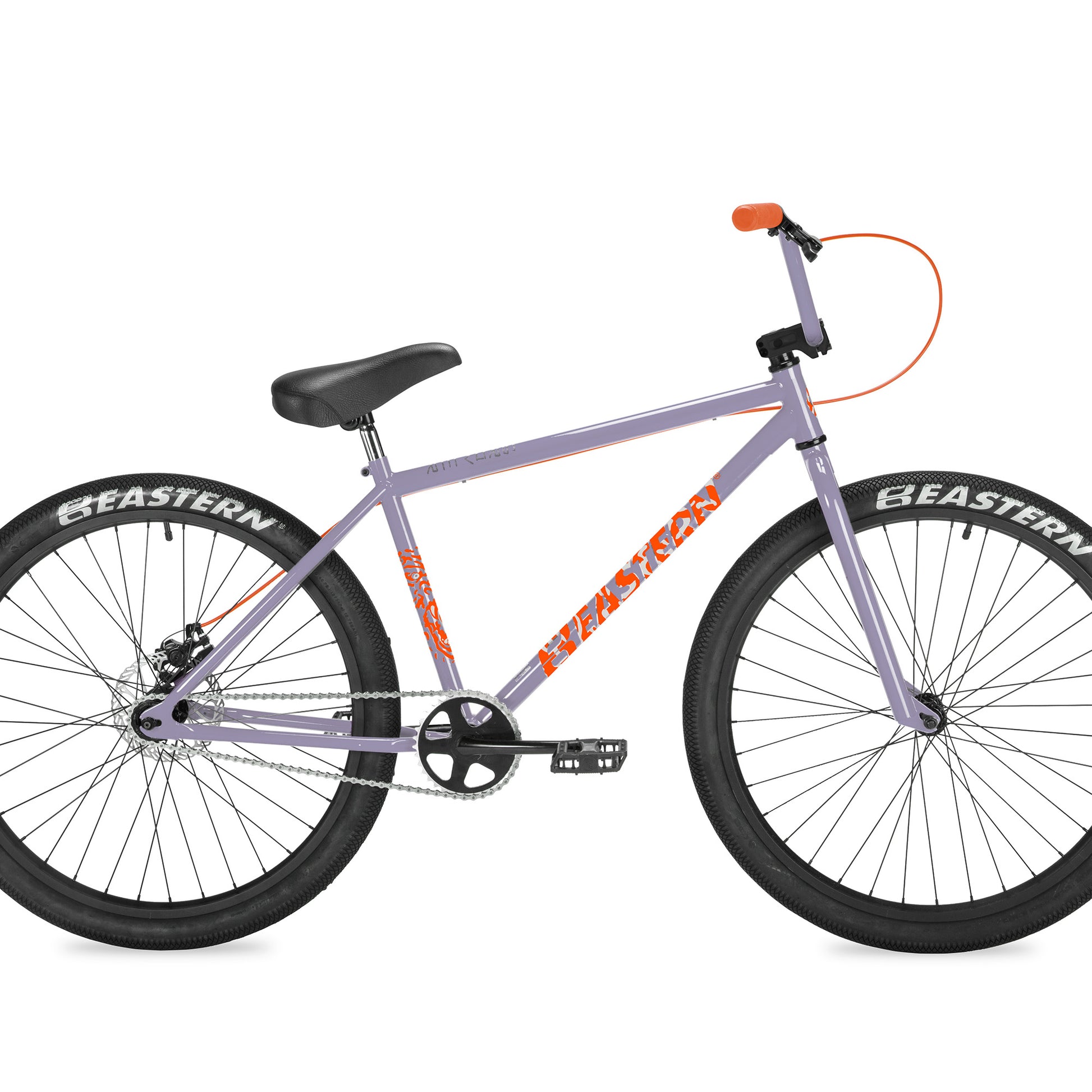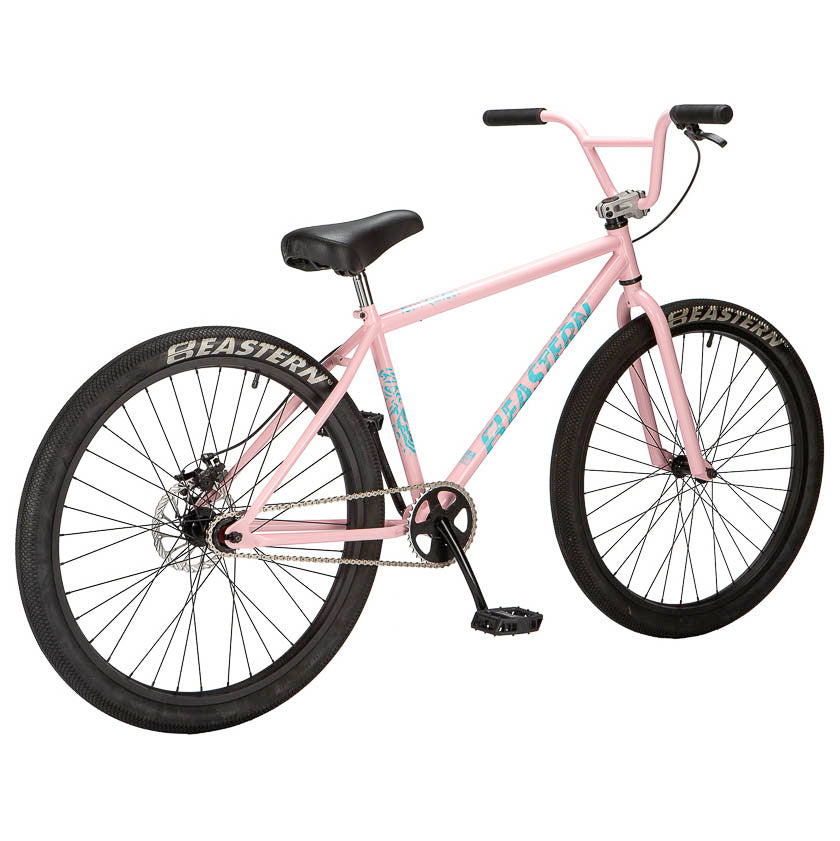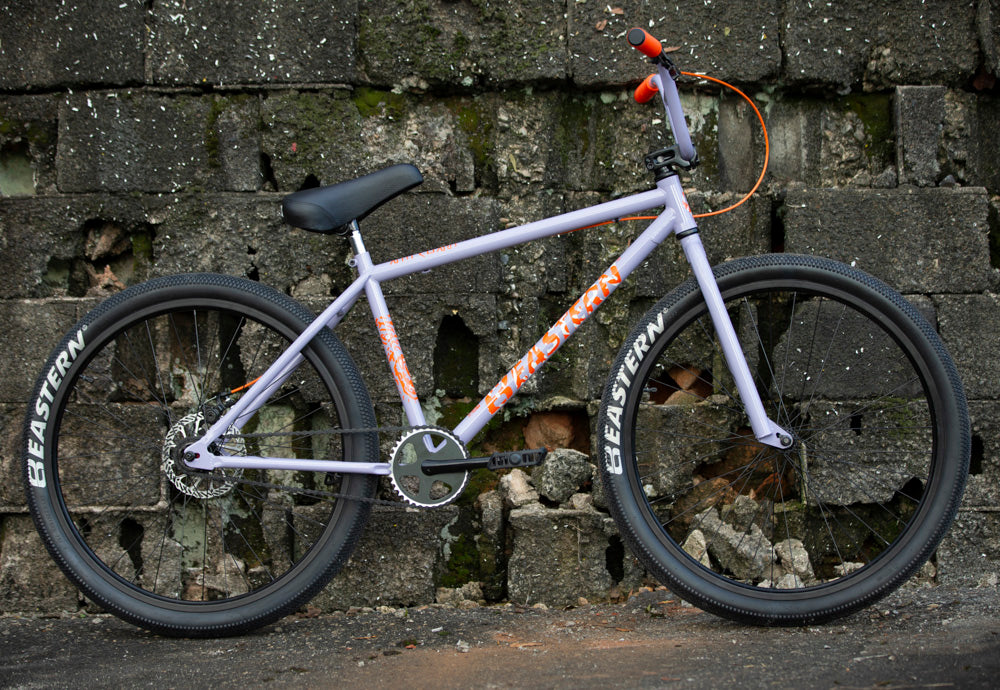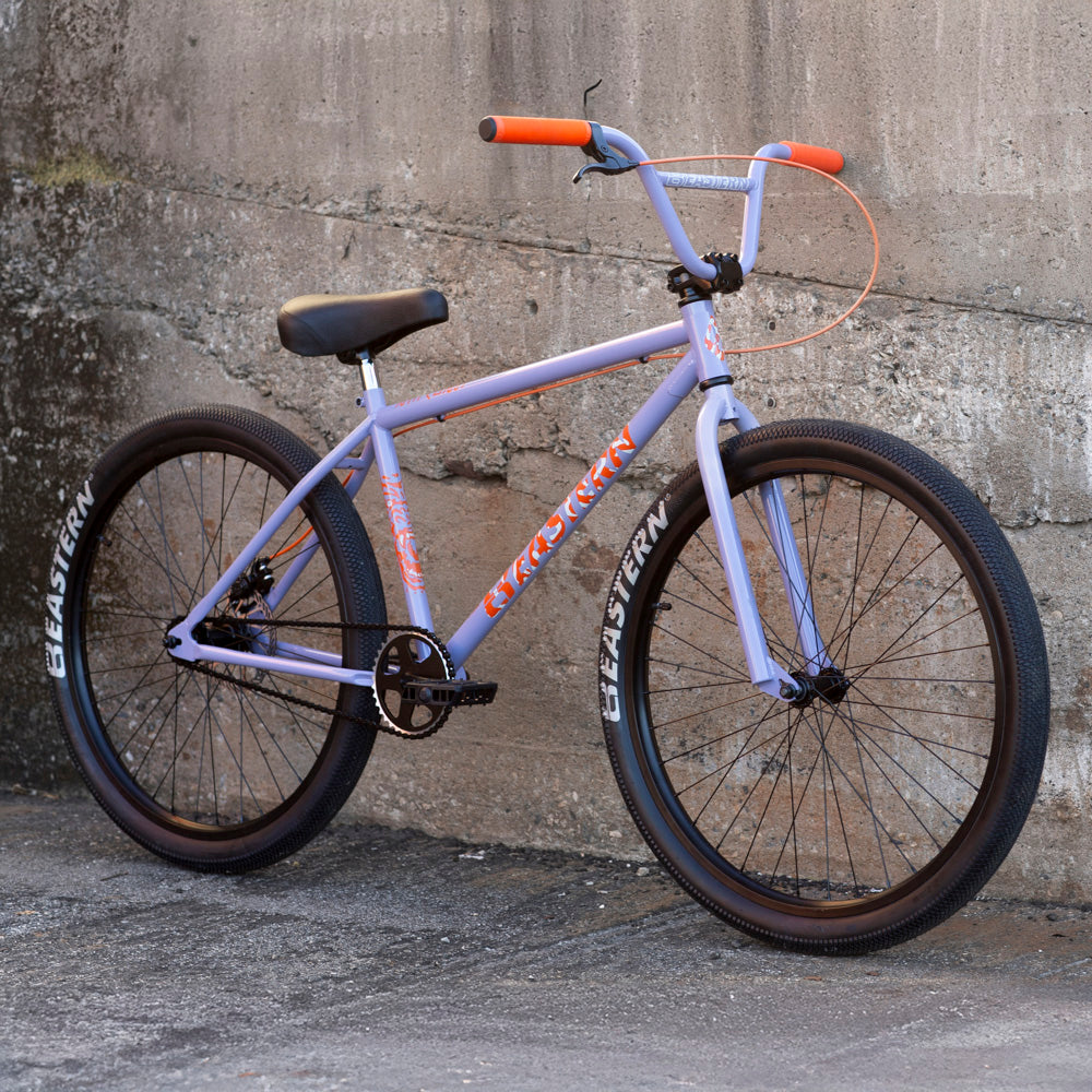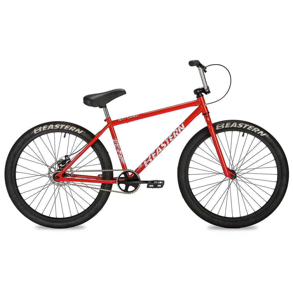 Built off of utility and the love of the ride, the Growler has a mean BMX look and a smooth feel. This sized up BMX is available in 26", Limited 26" and 29". Eastern logo tires, anodized and CNC’d alloy sprocket, flangeless Eastern Riblet grips set this bike off. Functional features like the mechanical disc brakes, heat-treated chromoly one-piece cranks and a durable all steel construction make it ride as good as it looks. Limited models feature Chromo Frame/Fork and 3pc cranks. Not intended for tricks or jumping.
