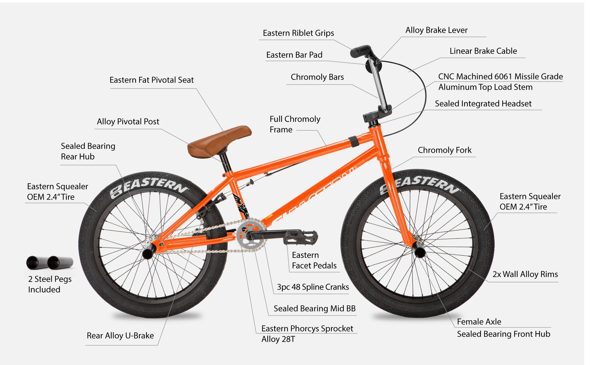 The expert level Eastern Shovelhead has been an Eastern staple for over a decade. A full chromoly frame, fork and bars provide lightweight performance. The Shovelhead is finished off with fully sealed hubs, 3-piece 48 Spline cranks, Squealer OEM tires, alloy sprocket, double wall rims and our new Facet pedals.